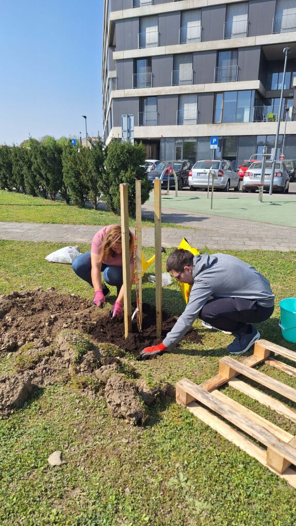 Danas je Adam, član vrtlarske ekipe SC-a, uz stručnu pomoć kolegice Ružice, zasadio prvu voćku SC-a, malu trešnju! Jako smo ponosni i sigurni da će okružena pažnjom i ljubavlju naših studenata naša trešnjica brzo rasti.