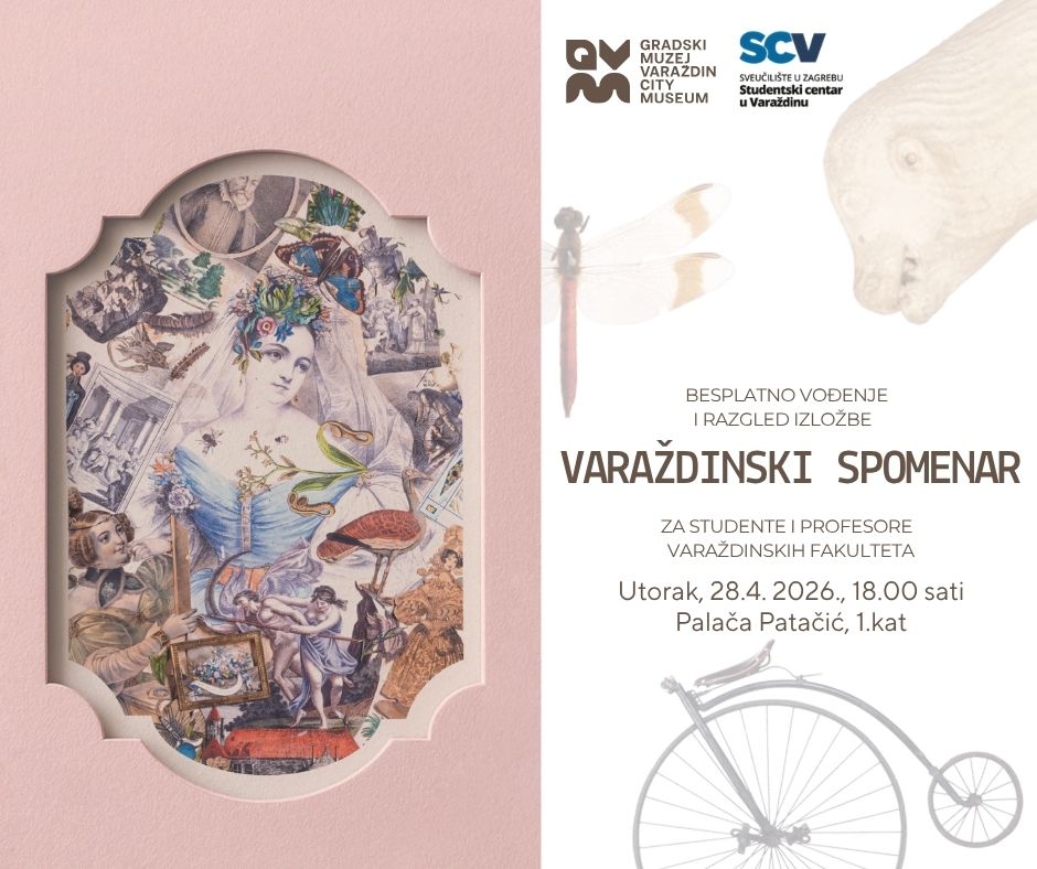 Pozivamo studente i profesore varaždinskih fakulteta na čudesnu šetnju kroz 100 godina prošlosti grada Varaždina – besplatni razgled izložbe VARAŽDINSKI SPOMENAR uz kustose Gradskog muzeja Varaždin.